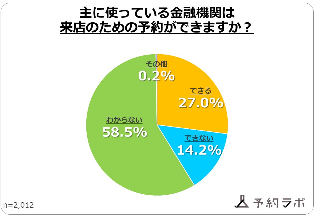 株式会社リザーブリンク(本社:東京都港区、代表取締役:井出勝彦、以下リザーブリンク)が運営する、日本で唯一の予約研究機関「予約ラボ(https://yoyakulab.net/)は、コロナ禍以降に銀行で導入が進んだ「来店予約サービス」の利用状況や認知度について調査を行いました。