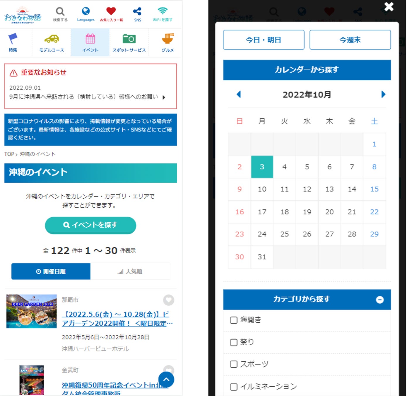 株式会社インフォモーション(本社:東京都目黒区、代表取締役:矢野祐輔)は、一般財団法人沖縄観光コンベンションビューローが運営する沖縄観光情報WEBサイト「おきなわ物語」(https://www.okinawastory.jp/)に掲載するための沖縄県内で開催される観光客向けのイベント情報の提供を、2022年10月3日(月)から開始しました。