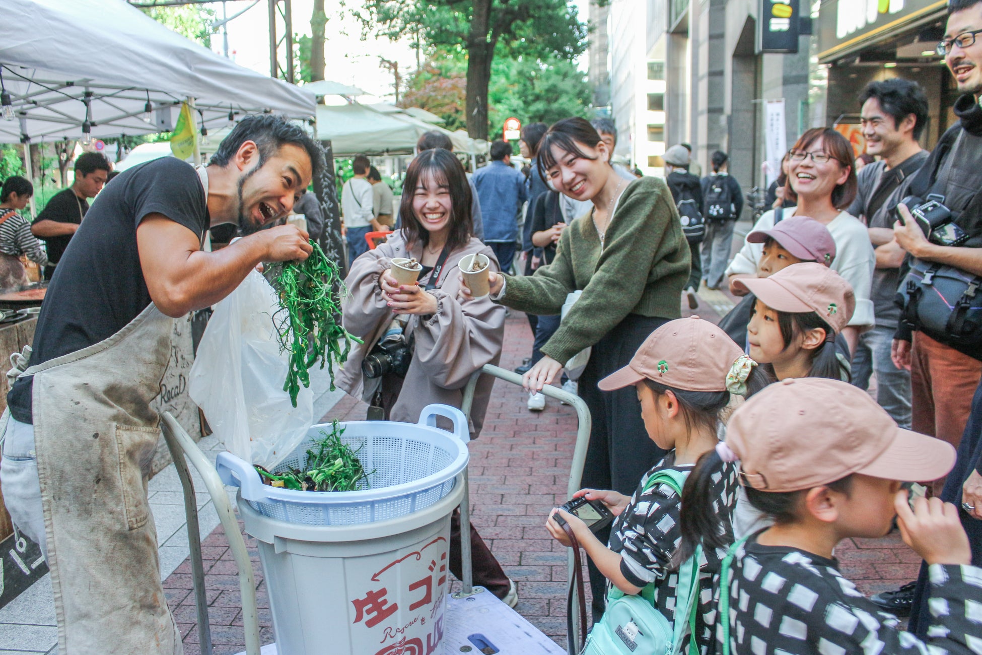 サーキュラーステーション、コンポスト、リユースカップ、洋服や本の回収など、「循環」がテーマのブースが集結!マーケットで循環に意識を向け、小さな一歩でも自ら暮らしやまちを良くするアクションを起こすきっかけをつくり続けています。昨年のマーケットで集めた生ごみを堆肥にして育てた野菜を使ったパエリアを販売し、食後に出る生ごみがまた堆肥になるという1年を通じた循環サイクルがマーケットの中で生まれています。