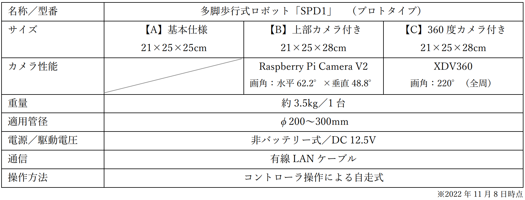 『SPD1』は、下水道管調査の現場において実証実験を実施後、製品モデルの発表を予定しています。また、汎用的なロボット技術をベースとしているため、作業可能なアームを追加するなど機能を付け替えることで、下水道工事以外にも、人の入れないような狭所における調査・作業への応用展開が可能であると考えています。