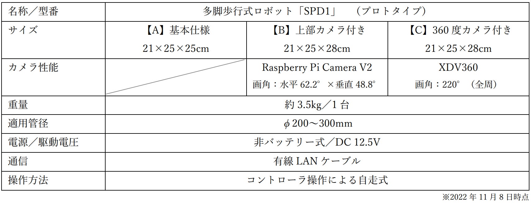 現在国内において下水道管内を調査するために用いられる機器の9割以上がタイヤ走行式のTVカメラ車に対し、走破性に優れた多脚歩行式を採用。今後の展開として、下水道工事だけでなく人が入れないほど狭い空間の調査・作業に応用が可能。