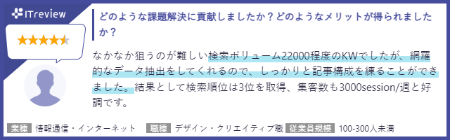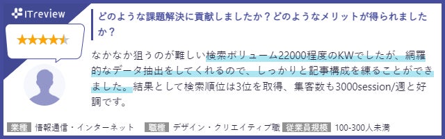 ITreview Grid Awardとは、ITreviewで投稿されたレビューをもとに、四半期に一度ユーザーに支持された製品を表彰する場です。