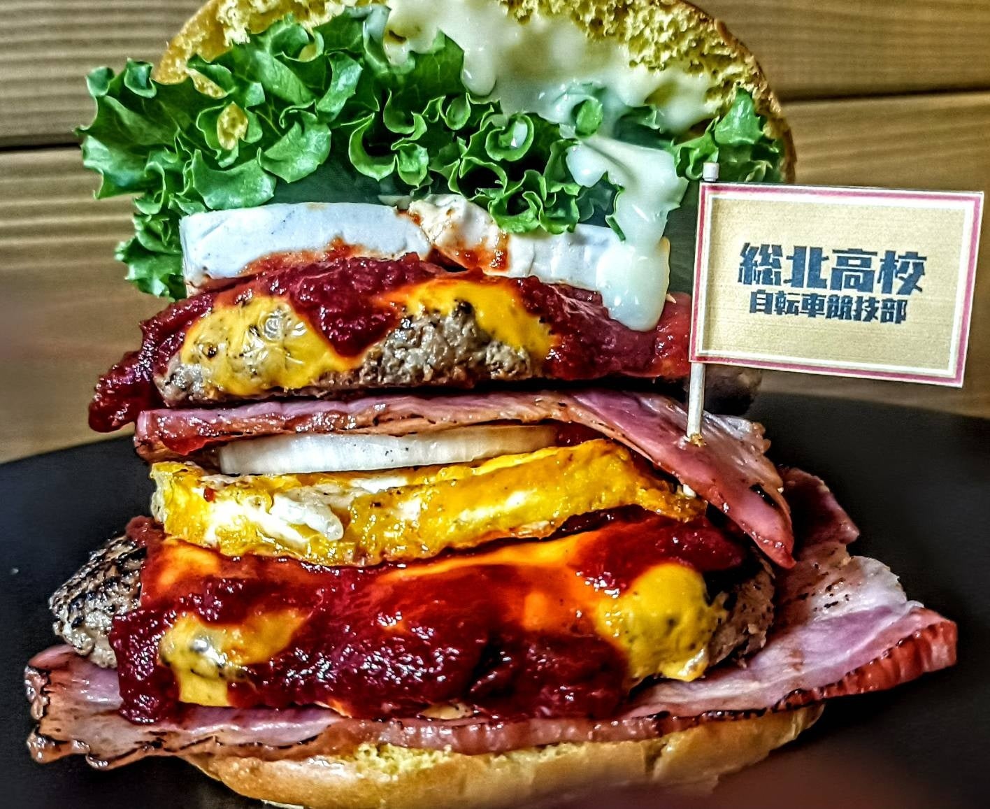 ダブルパテは主人公・小野田坂道のインターハイ2連覇を象徴し、具材を積み重ねる事で 総北高校自転車競技部をイメージした「努力と積み重ね」を表現。