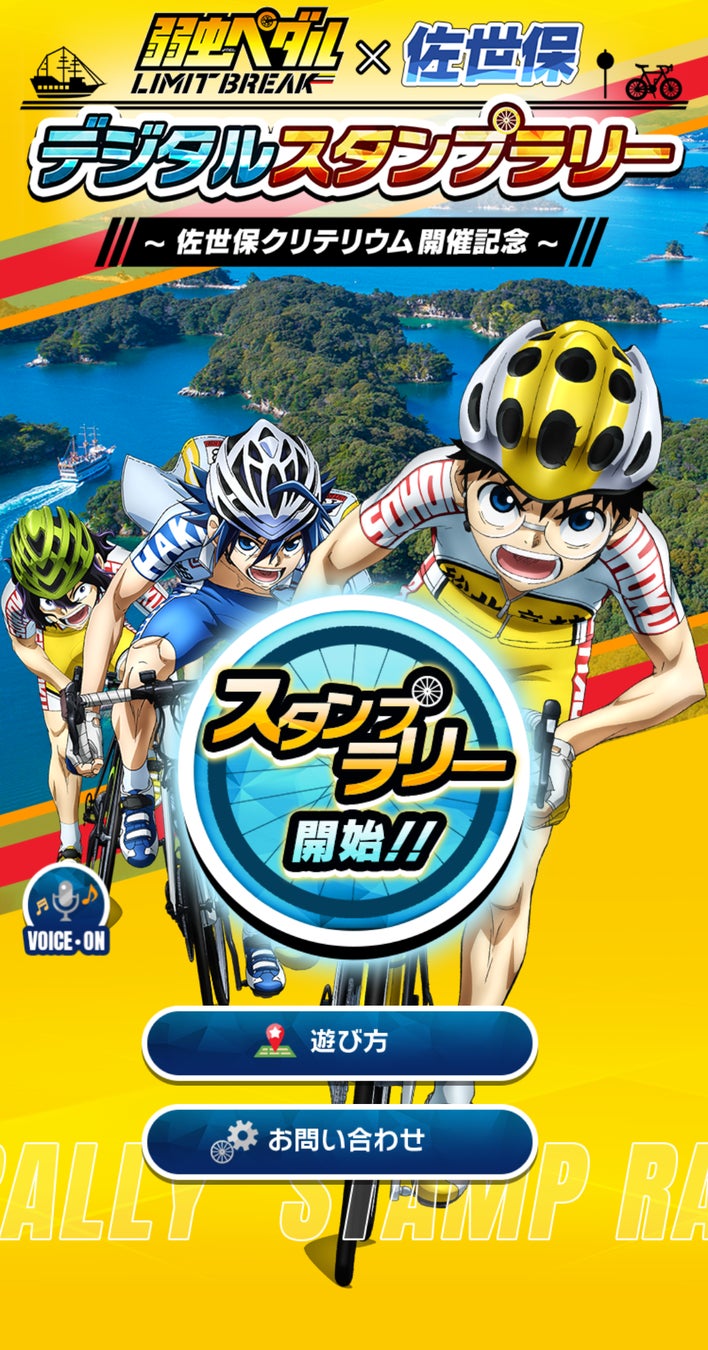 アニメ「弱虫ペダル LIMIT BREAK」の主人公・小野田坂道(CV:山下大輝)のボイスナビとともに、佐世保市内12の観光スポットを周遊。ポイントを集めれば、缶バッジやアクリルスタンドなどのコラボ限定グッズがもらえます。さらに各スポットではARキャラクターが出現して記念撮影もOK。人気メンバーたちと一緒に佐世保の旅をぜひ!