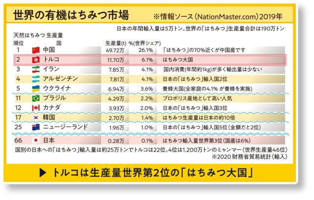 世界で数多くの受賞しているトルコ産「生はちみつ」。ヨーロッパ、アジア、アフリカ、米国でも毎日の健康習慣として、世界20ヵ国以上の人々が愛用しています!