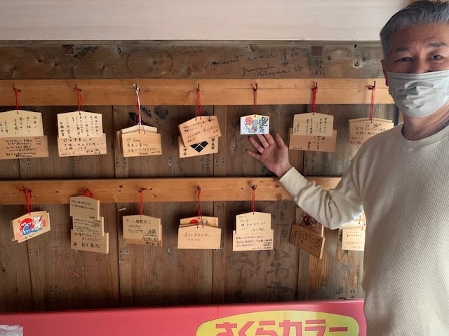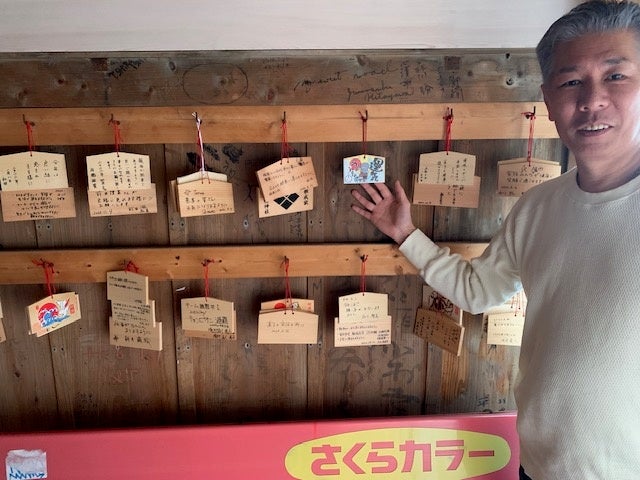 立石純子さんのウェブショップで購入した絵馬が店に飾ってあり、