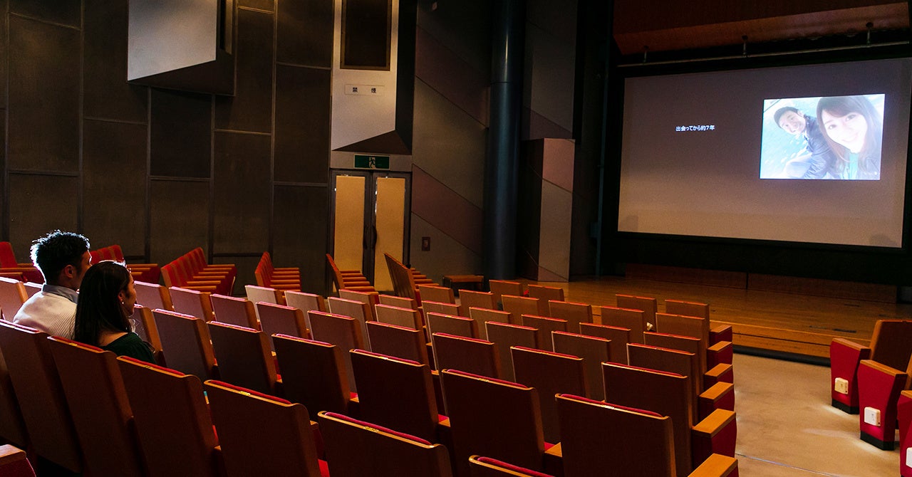 「映画館」を貸し切り臨場感溢れる巨大なスクリーンで、彼女への想いをドラマチックに伝えることができるプロポーズプランを新発売いたします。