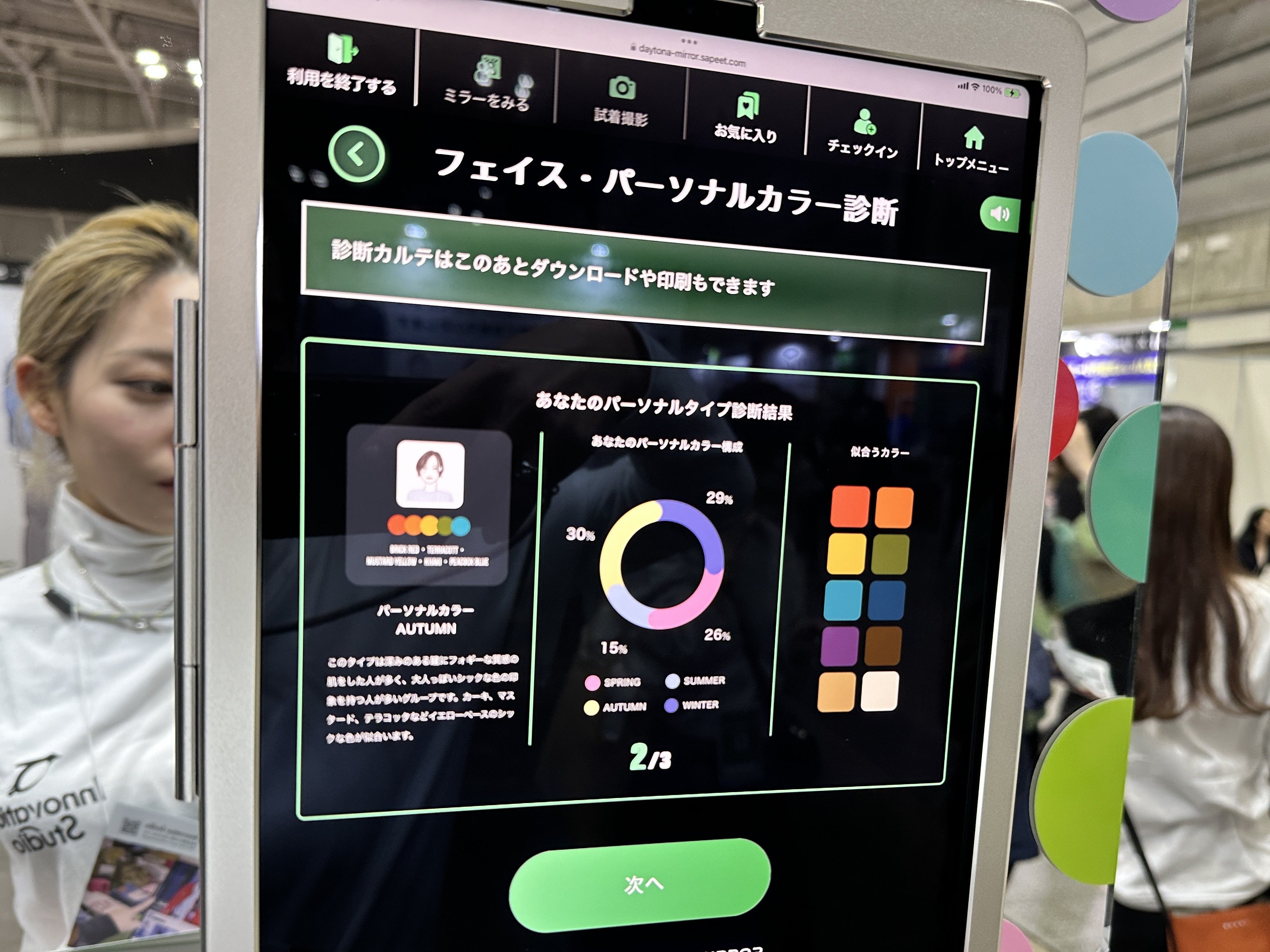 AIカメラで撮影するだけで顔タイプ、パーソナルカラーを診断。