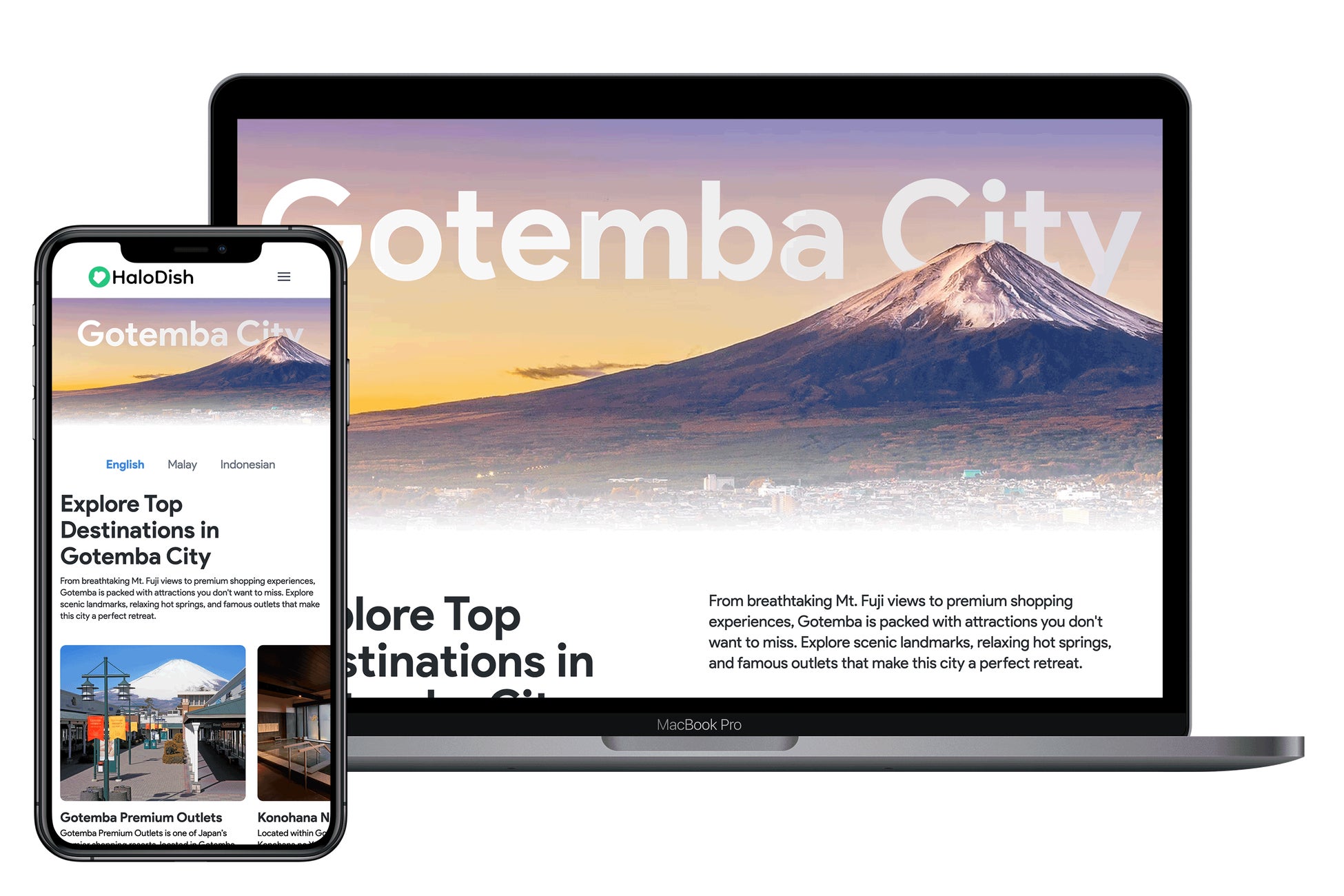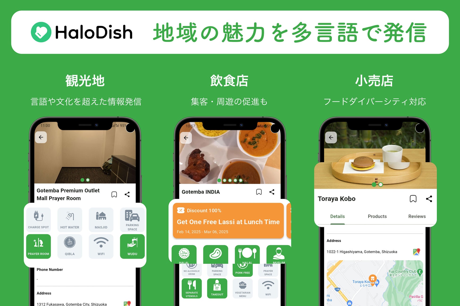 Halal&Veganライフスタイルのフレンドリーなパートナー「HaloDish」を提供する株式会社eftax(本社:兵庫県尼崎市、代表:中井 友昭)は、御殿場市の訪日ムスリム客誘致に向けた実証実験の一貫で市と連携し地域の魅力を発信するコンテンツをHaloDishに追加しました。市の観光交流課をはじめ、御殿場プレミアム・アウトレットや市内の飲食店、観光施設の関係者様にご協力いただき、特集ウェブページや多言語での情報発信コンテンツを公開しました。