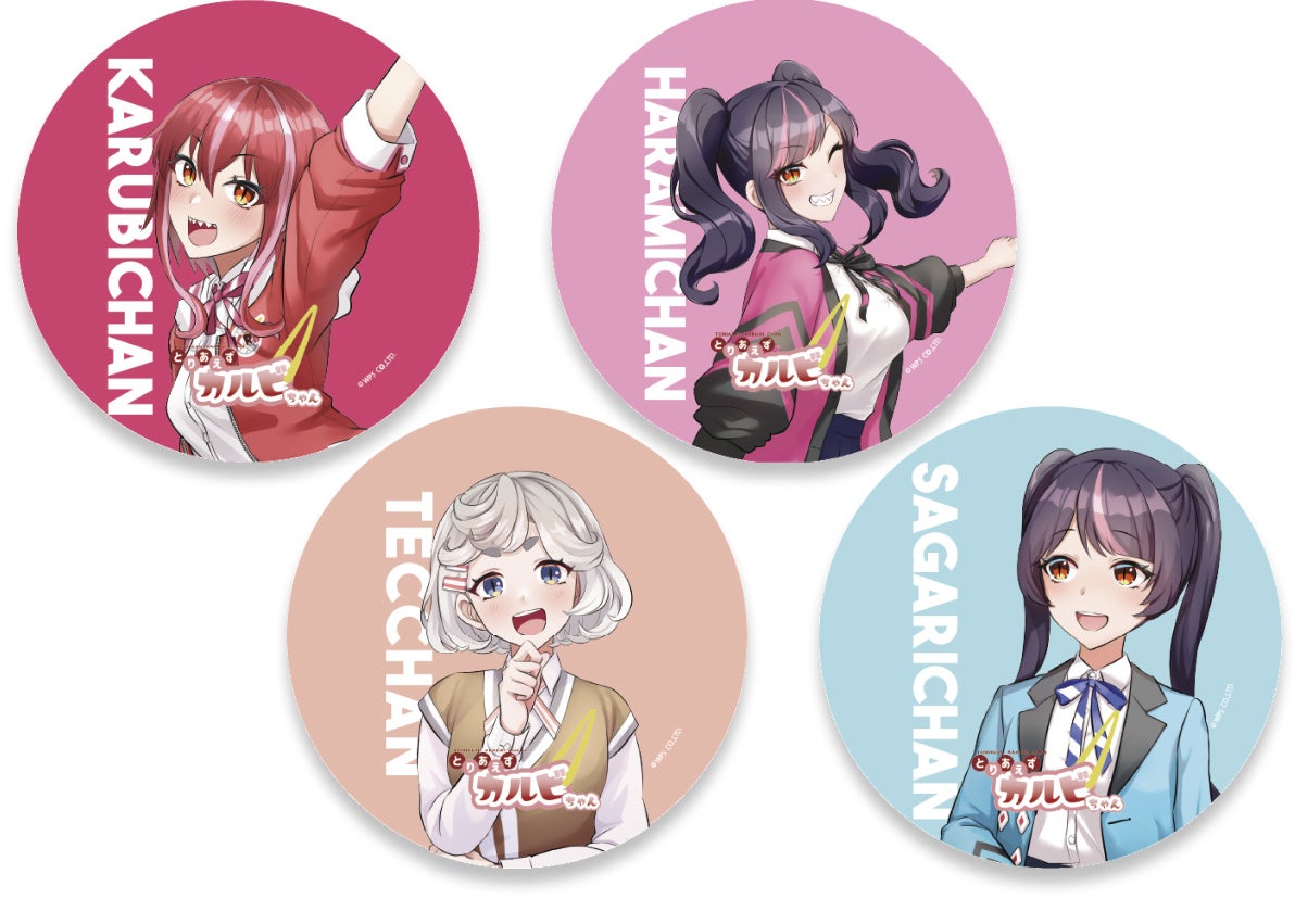 namco梅田店3階ではキャラクターの等身大パネル展示の他、限定缶バッジ(全4種類)