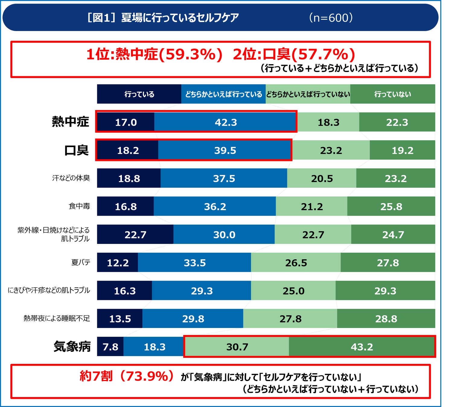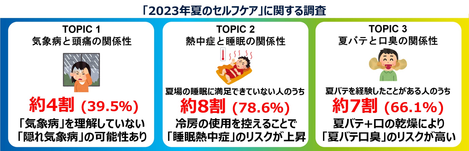 <「2023年夏のセルフケア」に関する調査>今夏は「熱中症」「口臭」「気象病」に対するセルフケアがより重要に。梅雨などの気圧変化に加え、脱マスクや電気代高騰が大きく影響
