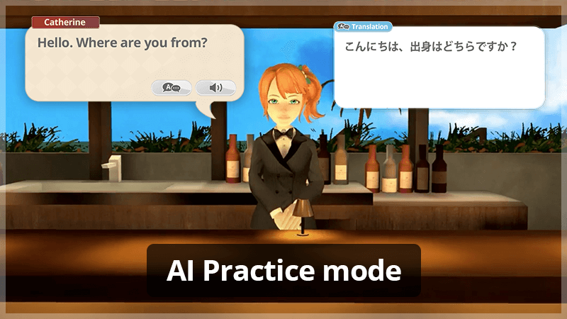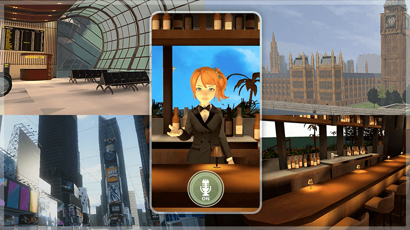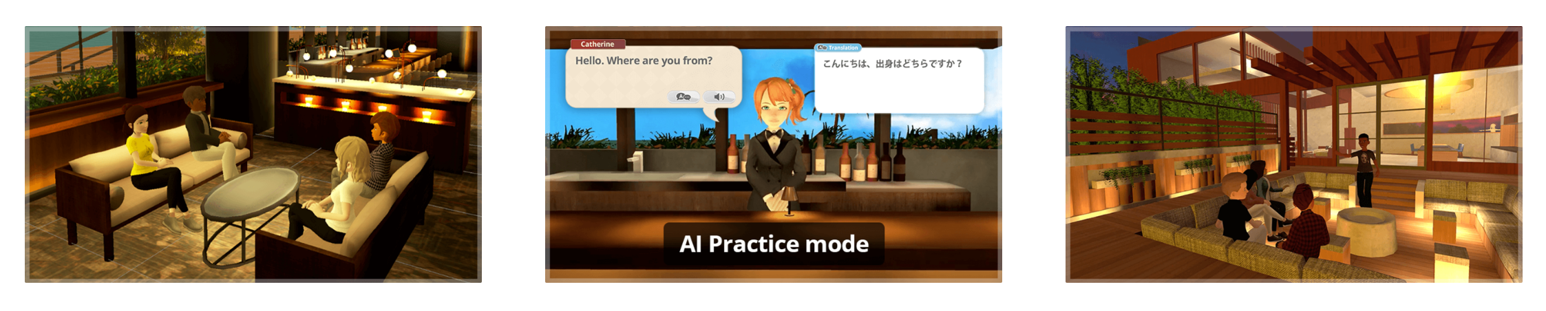ゲーム感覚で楽しくインタラクティブな学習ができる、AIを活用したロールプレイング型レッスン空間・自習空間を用意。