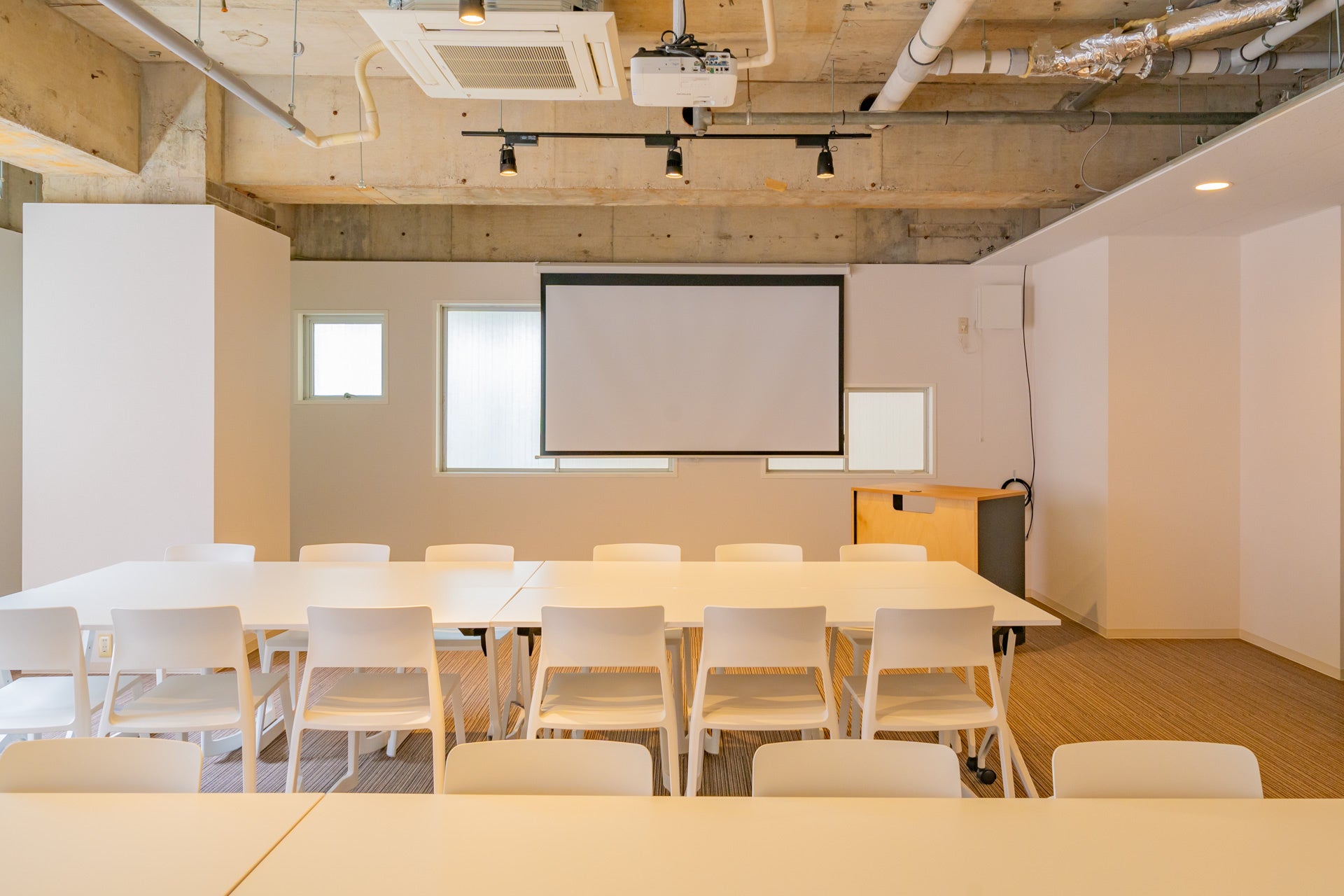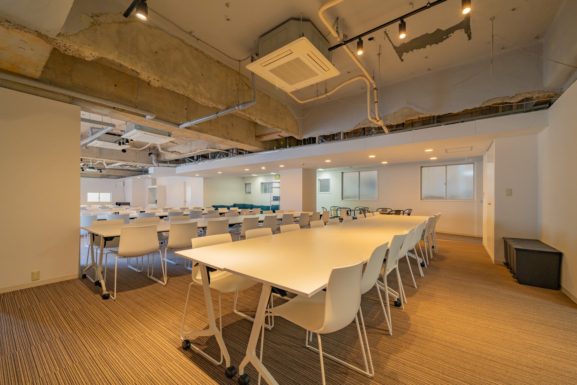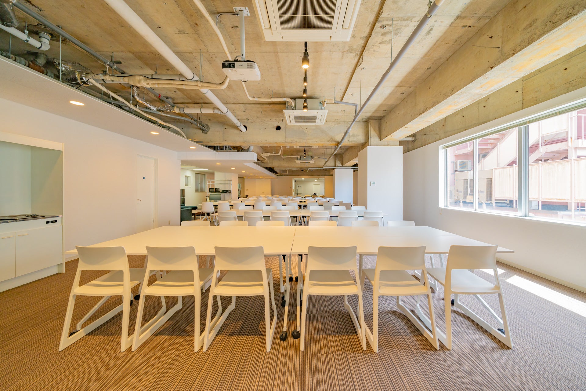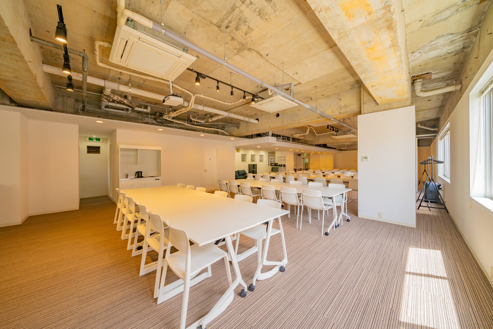 オフサイトミーティング、キックオフイベント、採用説明会、商品発表会など、様々なビジネスイベントに適しております。この規模で1日単位でのレンタルが可能なオフィスは希少です。