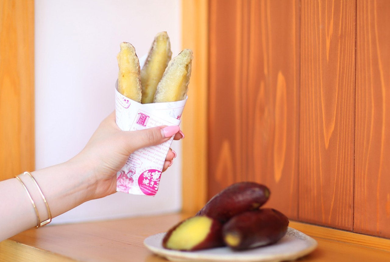 「秘蜜な焼き芋」は表参道の店舗以外にも、フェスやイベント、催事など多角的に展開していますが、その天ぷらを食べられるのは当店のみとなっています。日本食の中でも世界的に注目が高まっている天ぷらを、手軽なスタイルで楽しむことができます。