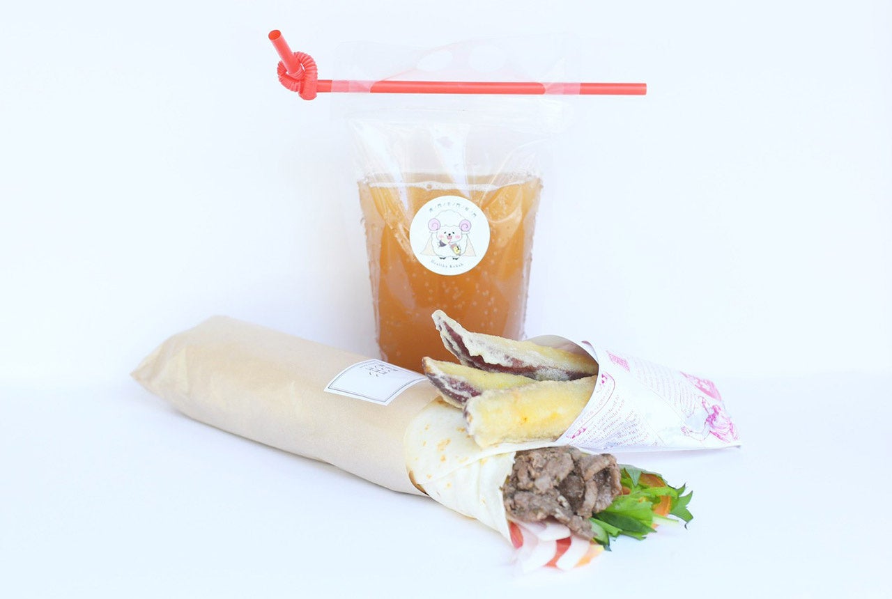 ケバブラップは「羊SUNRISE」監修の高品質な羊肉と特徴的な野菜を使用した3種類をご用意。木桶醸造の柴沼醤油などを使用した和テイストのソースは5種類から選べます。ケバブのお供として、表参道で人気の焼き芋専門店「秘蜜な焼き芋」のさつまいもを使用した「熟成焼き芋の天ぷら」も楽しめます。フード類と8ccoのドリンクとの相性は抜群で、TV番組『KinKi Kidsのブンブブーン』でも、出演者の皆様から大変好評でした。
