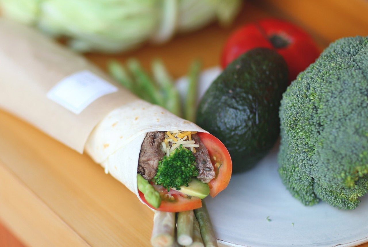 羊肉、キャベツ、トマト、ブロッコリー、アスパラガス、アボカド、チーズ