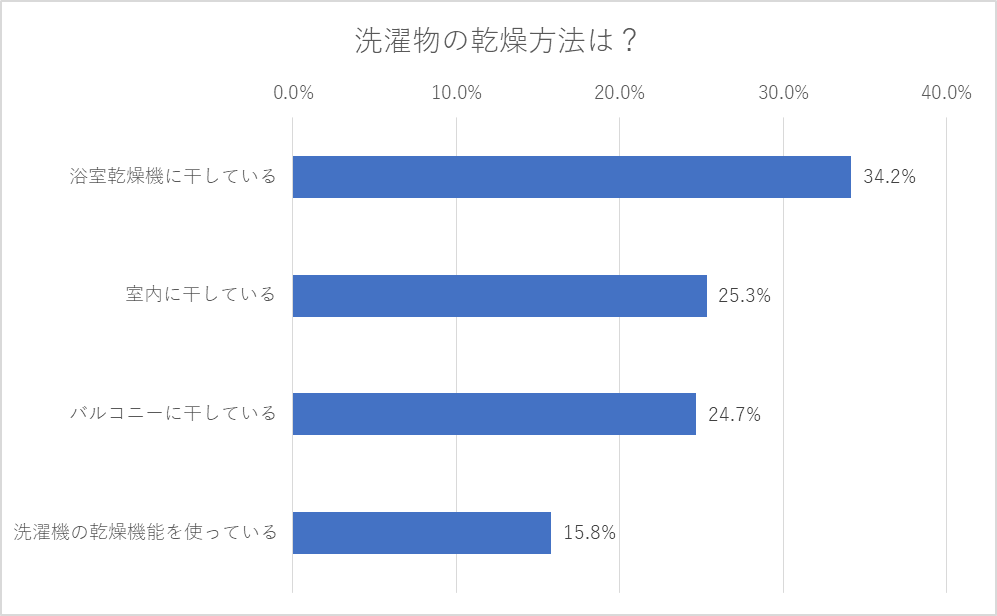 また、最近では、室内干し専用の洗濯洗剤も豊富にあり、室内干しがあたり前になってきている状況から、若干ですがバルコニーで干す方を上回った結果となりました。