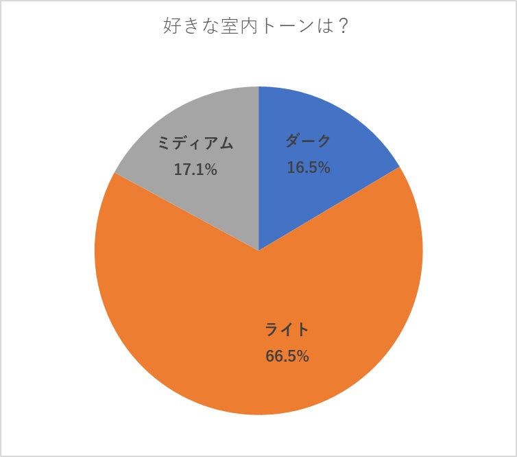 - 室内の全体的なトーンやクロスなど部屋全体に影響するものに関しては明るく落ち着いたスタンダードなカラーを求める人が大多数。