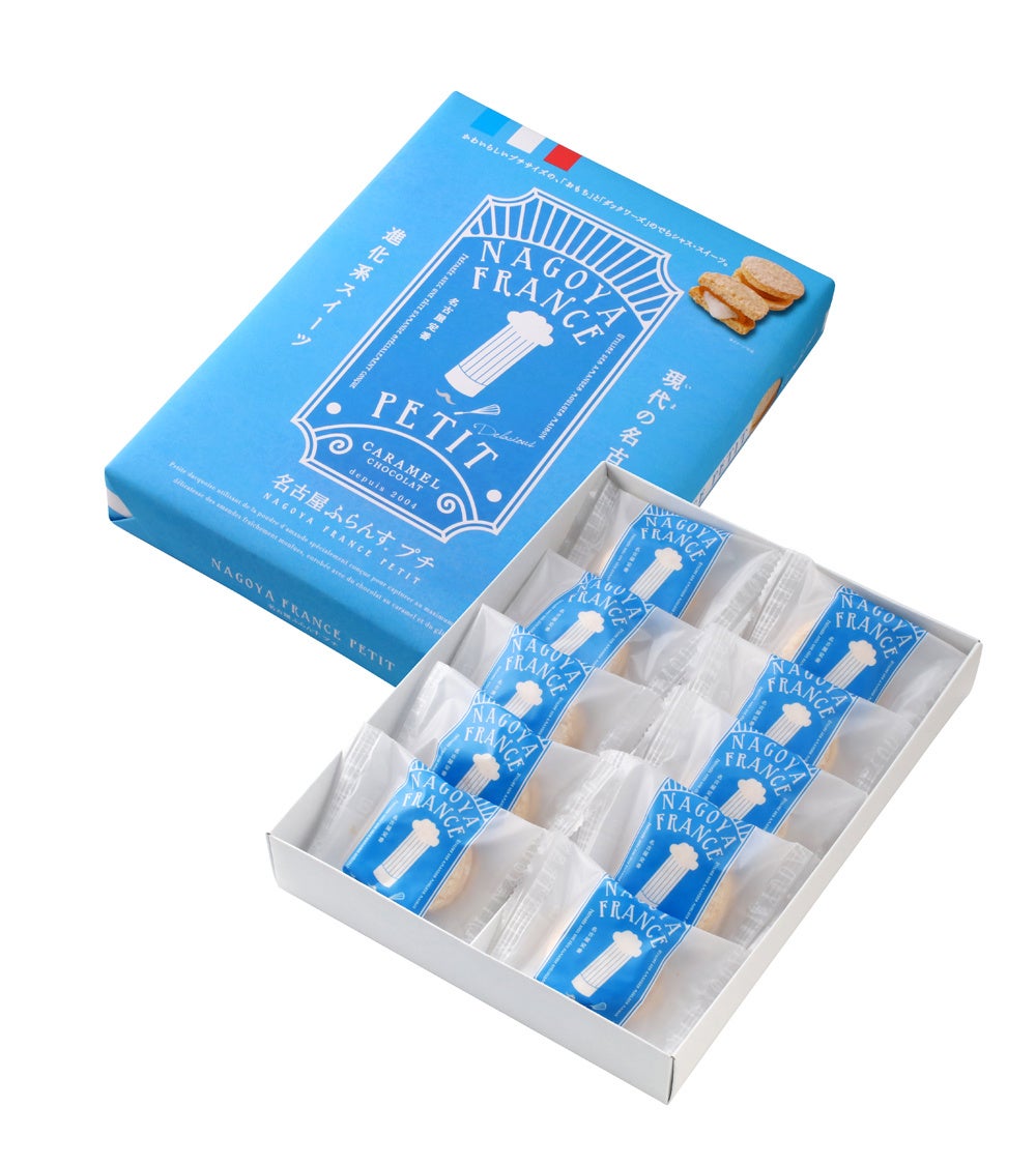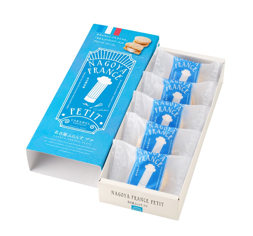 「名古屋ふらんす®」発売20周年を記念し、2月20日(火)から新登場した「名古屋ふらんす®プチ」は2つの新製法でサックリとした軽い食感のダックワーズと、キャラメルショコラに包まれたやわらか~いおもちの食感のコントラストをお楽しみいただける、今までにない新しいスイーツです。