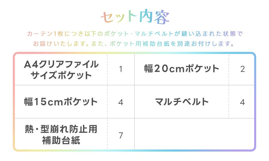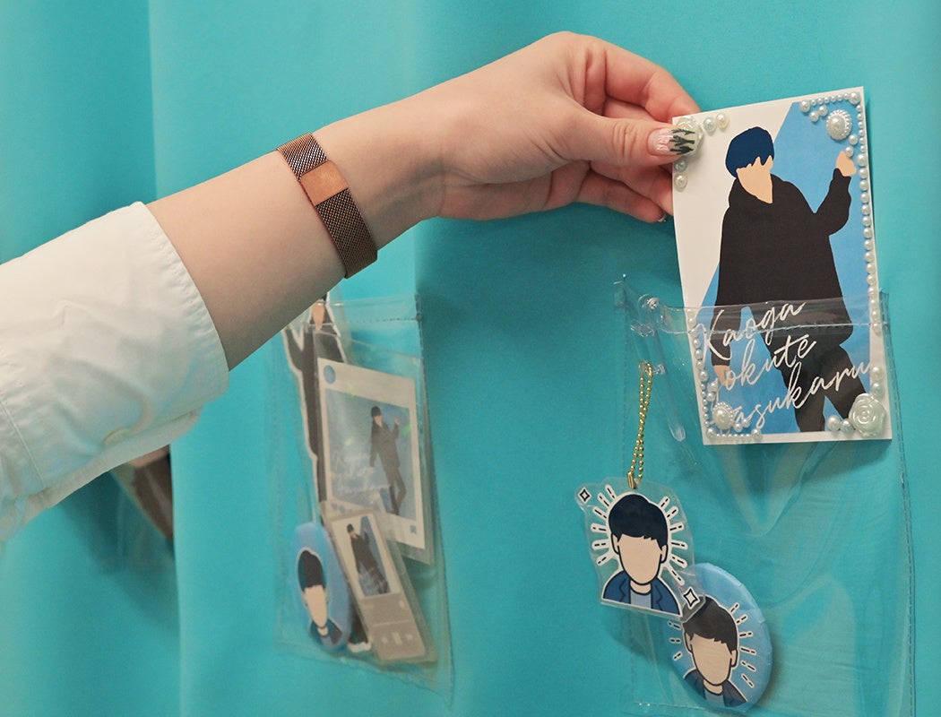 「推し活カーテン」は様々なサイズのポケットと、マルチベルトが付いたカーテン。