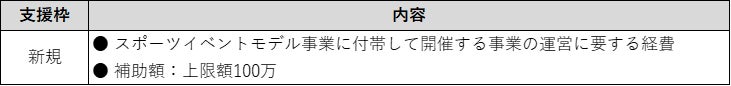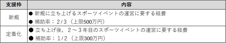 【留意事項】今年度事業は、withコロナ時代の「新たな生活様式」に適応し、感染症予防に十分な配慮をしながら、健康で安全・安心なスポーツイベント開催を第一に、事業を推進することとします。イベント実施により新型コロナウィルス感染症が拡がることのないよう十分に感染拡大防止対策が図られる事業を採択する方針です。