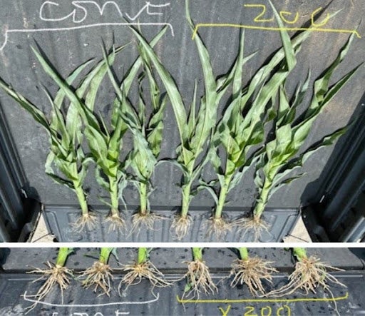 数十年に一度の干ばつ下でコーンに「スキーポン」散布 生育・収量に有意差