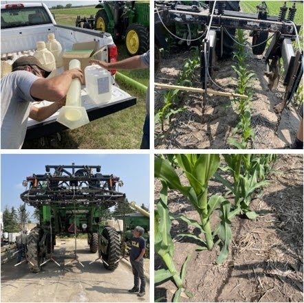 本試験は2023年6月、アメリカ中西部(ネブラスカ州、アイオワ州)のコーン圃場で、コーンのV4期(本葉 4 葉抽出期)にスキーポンを散布し、その後の生育、収量の状況を追跡しました。