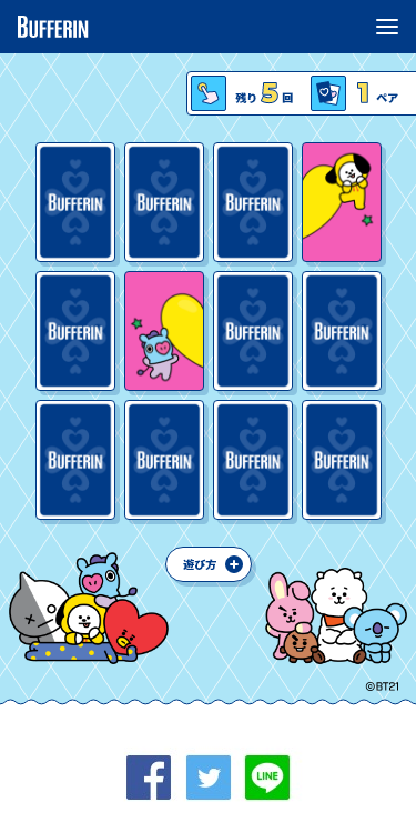 - ■「ペアさがしゲーム」が登場!「バファリン BT21キャンペーン」について