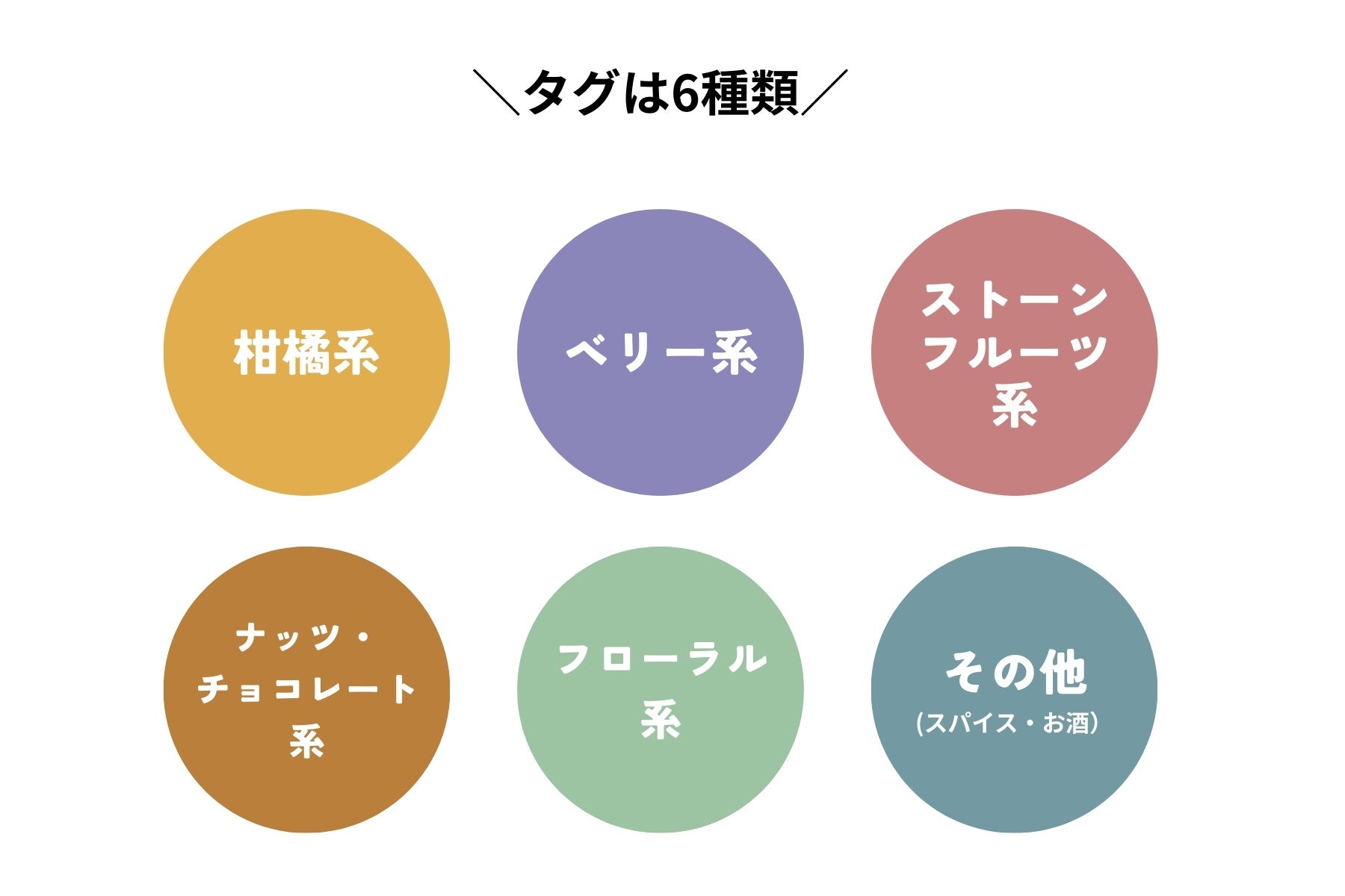①6種の「タグ」がガイド役! 相性のよいコーヒーとスイーツを探そう