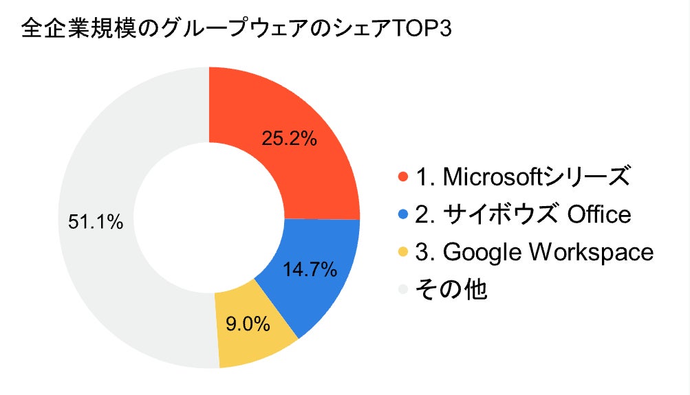 【グループウェア市場調査】大企業向けのMicrosoftシリーズ、中堅〜中小企業向けのサイボウズ Office、万能タイプのGoogle Workspaceがシェア上位に。