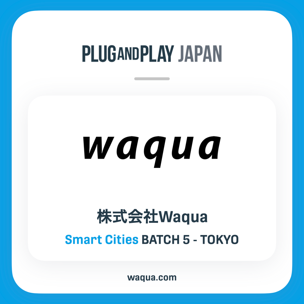 Plug and Play Japanが提供するアクセラレータープログラムとは、大手企業と国内外のスタートアップを結び、イノベーションを創出することを目的としています。本プログラムを通し、大手企業は自社のイノベーションを加速させる国内外スタートアップとのマッチングが可能になり、スタートアップは幅広く大手企業との連携機会を得られます。国内だけでは得られないようなイノベーションに関する最新情報を取得できるほか、業界の垣根を超えた交流が生まれる場となっています。株式会社Waqua(以下Waqua)は8分野の内の1つ「Smart Cities(スマートシティ)」という分野に採択された。