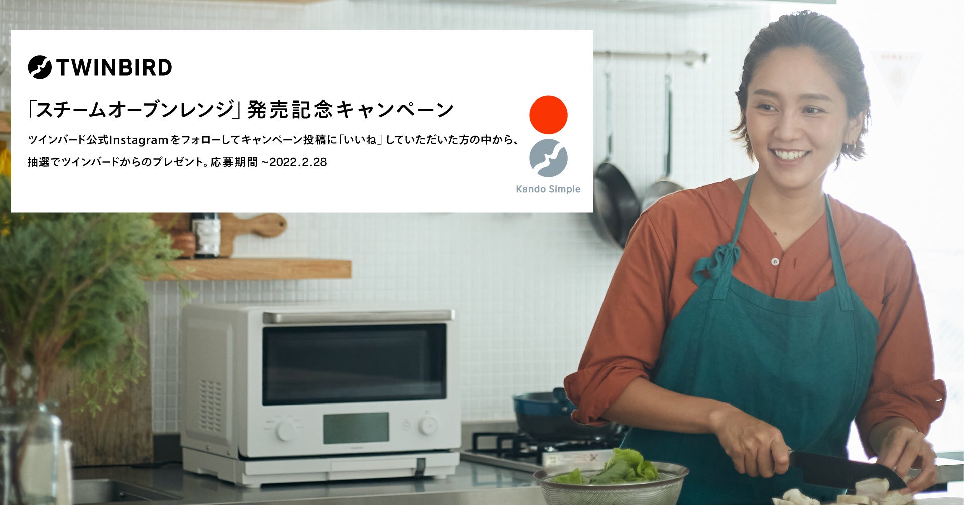 ツインバード工業株式会社(代表取締役社長 野水重明 本社:新潟県燕市、以下「ツインバード」)は、ツインバード公式Instagramをフォロー&いいねしていただいた方の中から抽選で計6名様に新ブランドライン「感動シンプル」から発売された「スチームオーブンレンジ」(1名様)や製品アンバサダーの料理家 和田明日香さんのサイン入りオリジナルグッズ(5名様)が当たる Instagramキャンペーンを実施します。