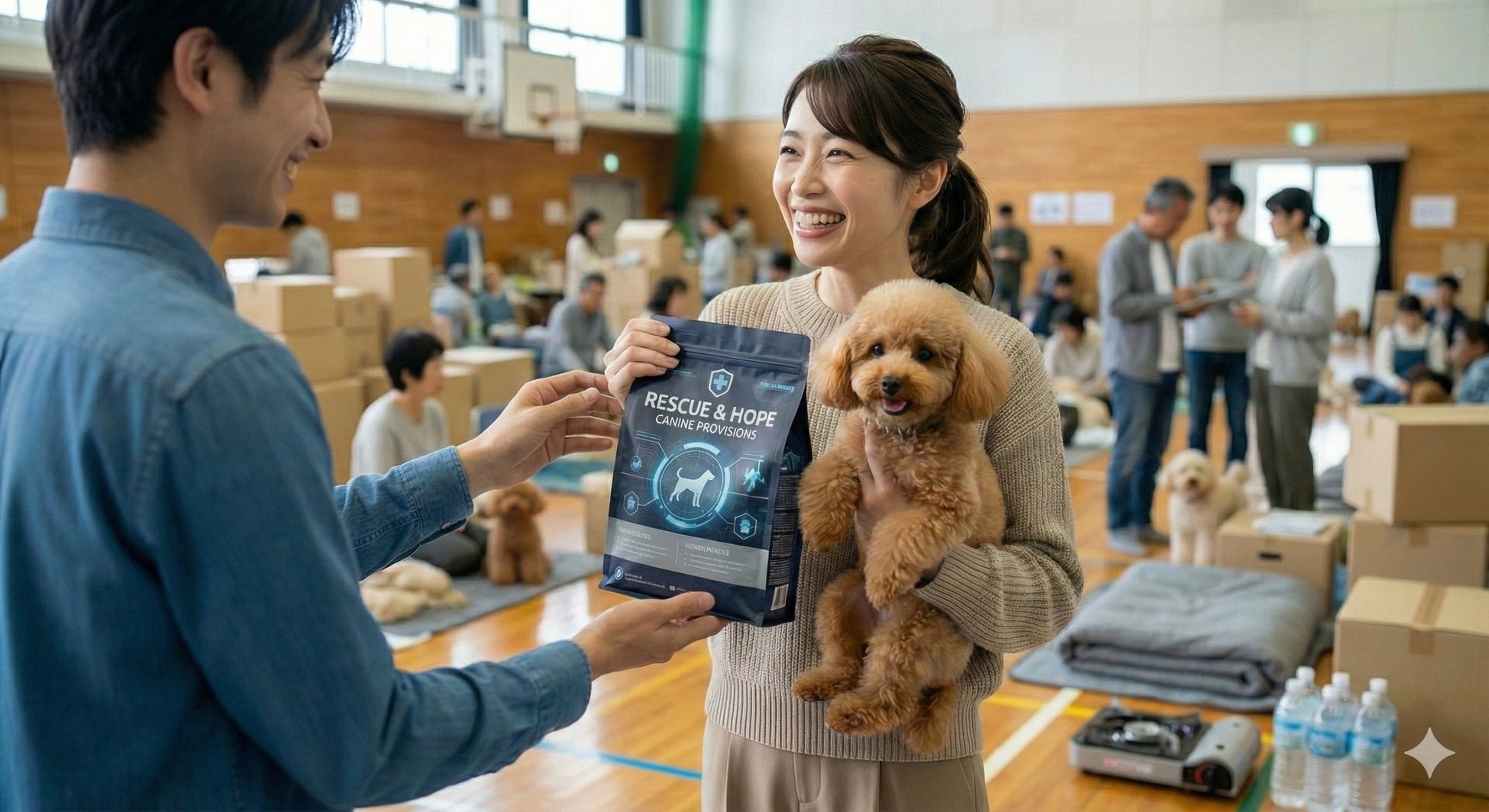 災害時、ペットは家族でありながら人の備えに比べてフードや水の備蓄が後回しになりやすい現実があります。避難所や避難先では愛犬の食事が確保できず不安が増し、体調を崩すことも起こりえます。