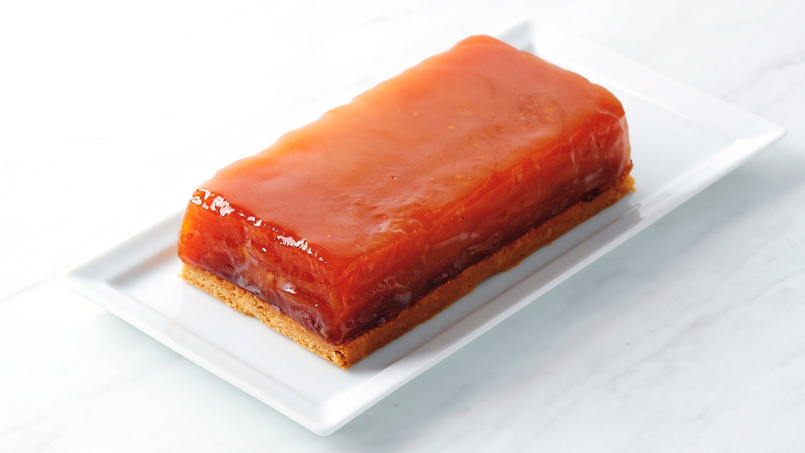 りんごのタルトタタンも Makuake限定で販売いたします。ごく薄く切ったりんごを重ねて焼いた「タルトタタン(ポム)」は、 口溶けが良く、程よい甘さと酸味、そしてキャラメルのような香ばしさが特徴。透明感のある琥珀色のグラデーションが美しくて食べるのがもったいないほどですが、一切れ食べたら「もう一切れ」と、後を引くおいしさです。フランスの定番菓子タルトタタンの場合くし形のりんごを使用しますが、コンティチーニは無限のテクニックと自由な発想をもとにクラシック菓子を再解釈。りんごを薄くスライスする切り方は、来日し日本料理店に訪れた際に、大根のかつらむきより着想を得て作られました。りんごのペクチンの作用でつるっとした食感になることが特徴です。