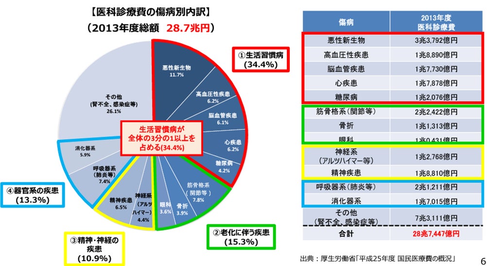 生活習慣病患者は年々増加の一途で約5,000万人にのぼり、医療費・介護費が我が国の財政を圧迫しています。