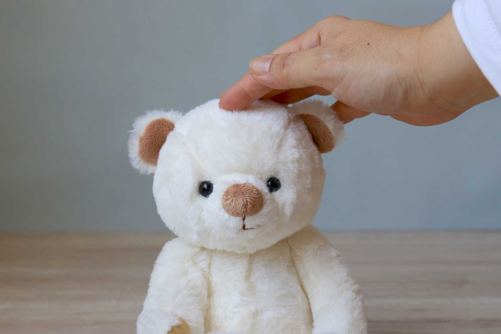 手振りの表現で表情の印象を変化させるテディベア