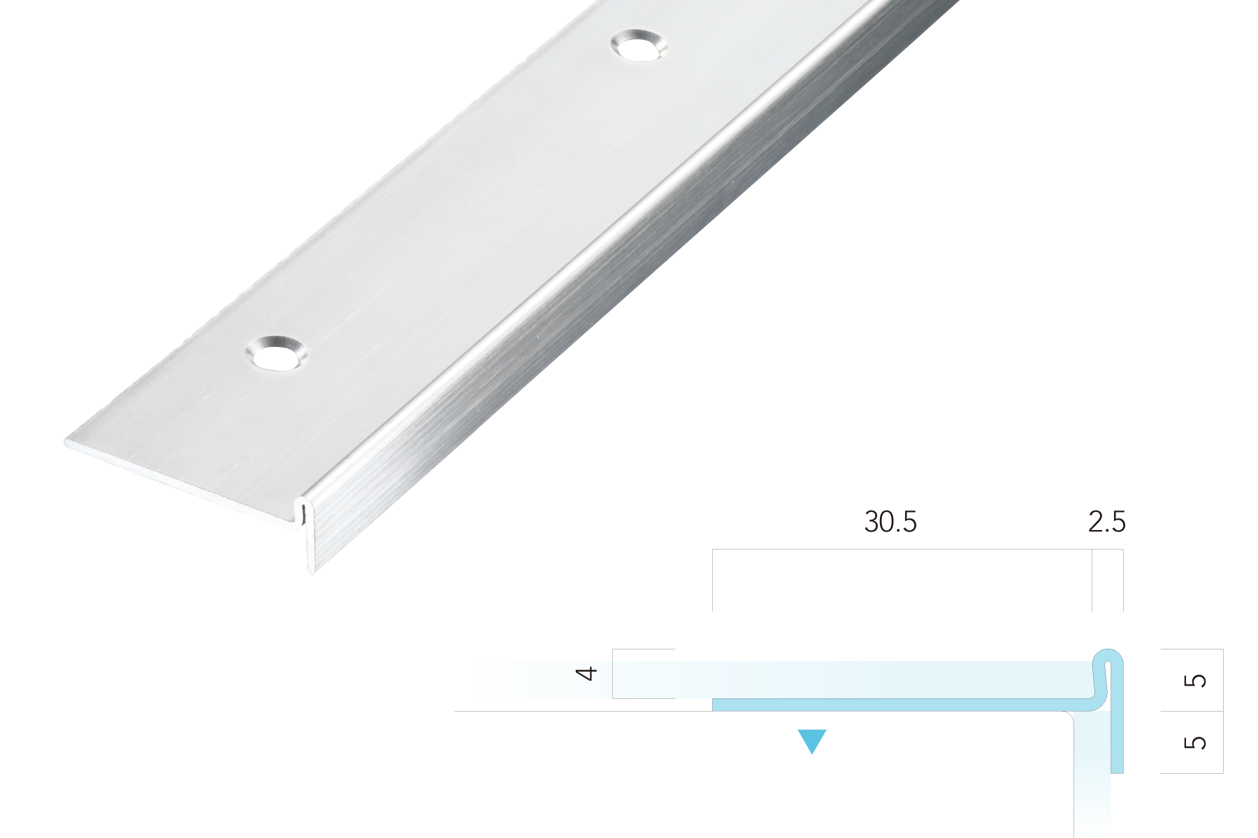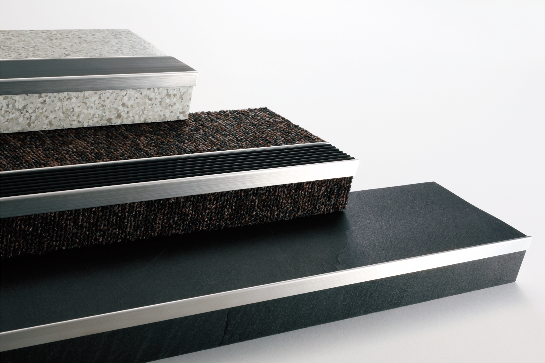 これにより、 Previo のノンスリップ&段鼻保護見切りは、24タイプ・89バリエーションとなり、天然木・集成材踏板をふくめた、ほぼすべての室内階段用床材に対応できる広範なラインナップを確立しました。