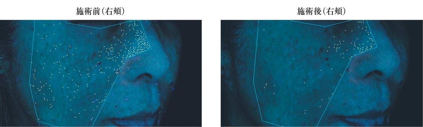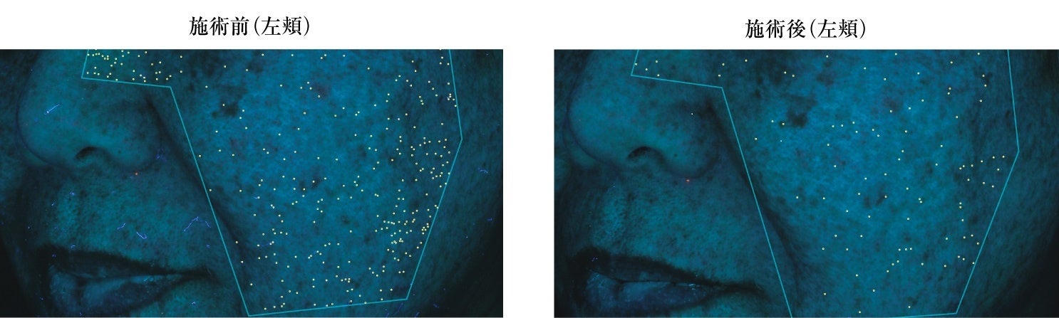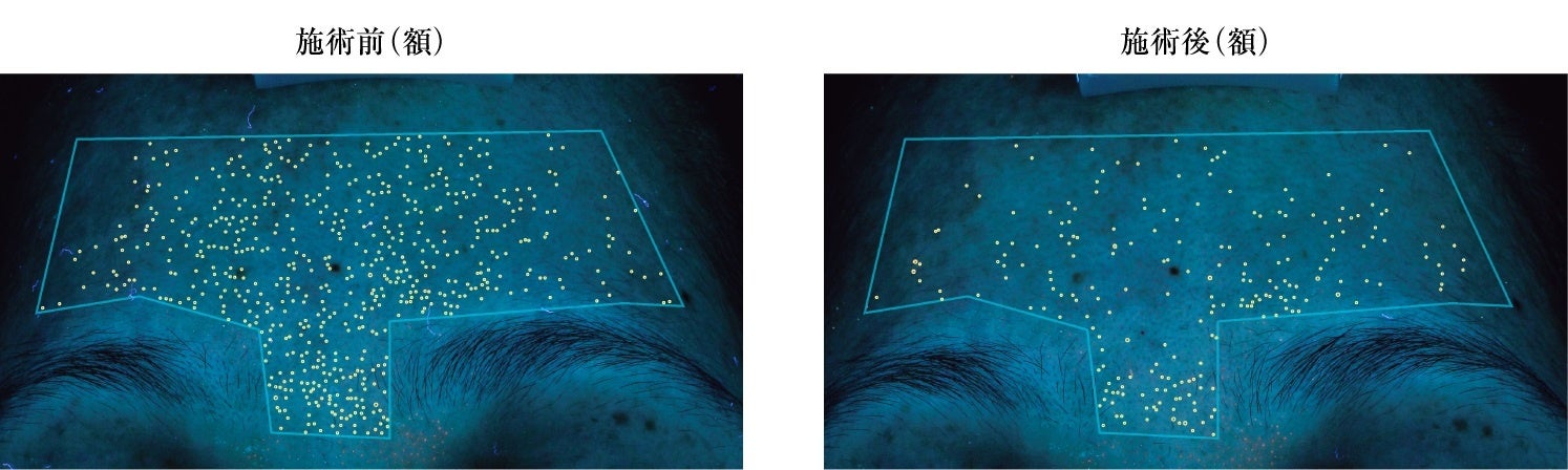 (顔の皮膚画像解析カウンセリングシステムVISIA Evolutionにて測定)