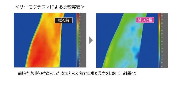 塗布した瞬間の肌の表面温度を、3℃下げる効果があります。