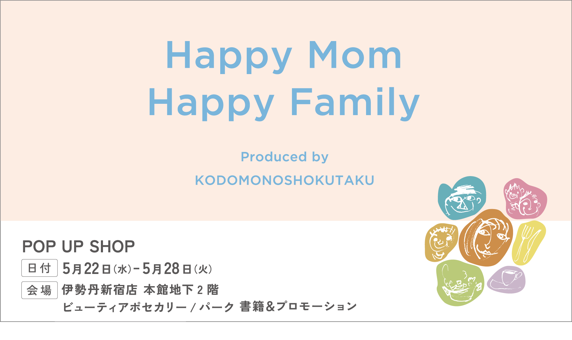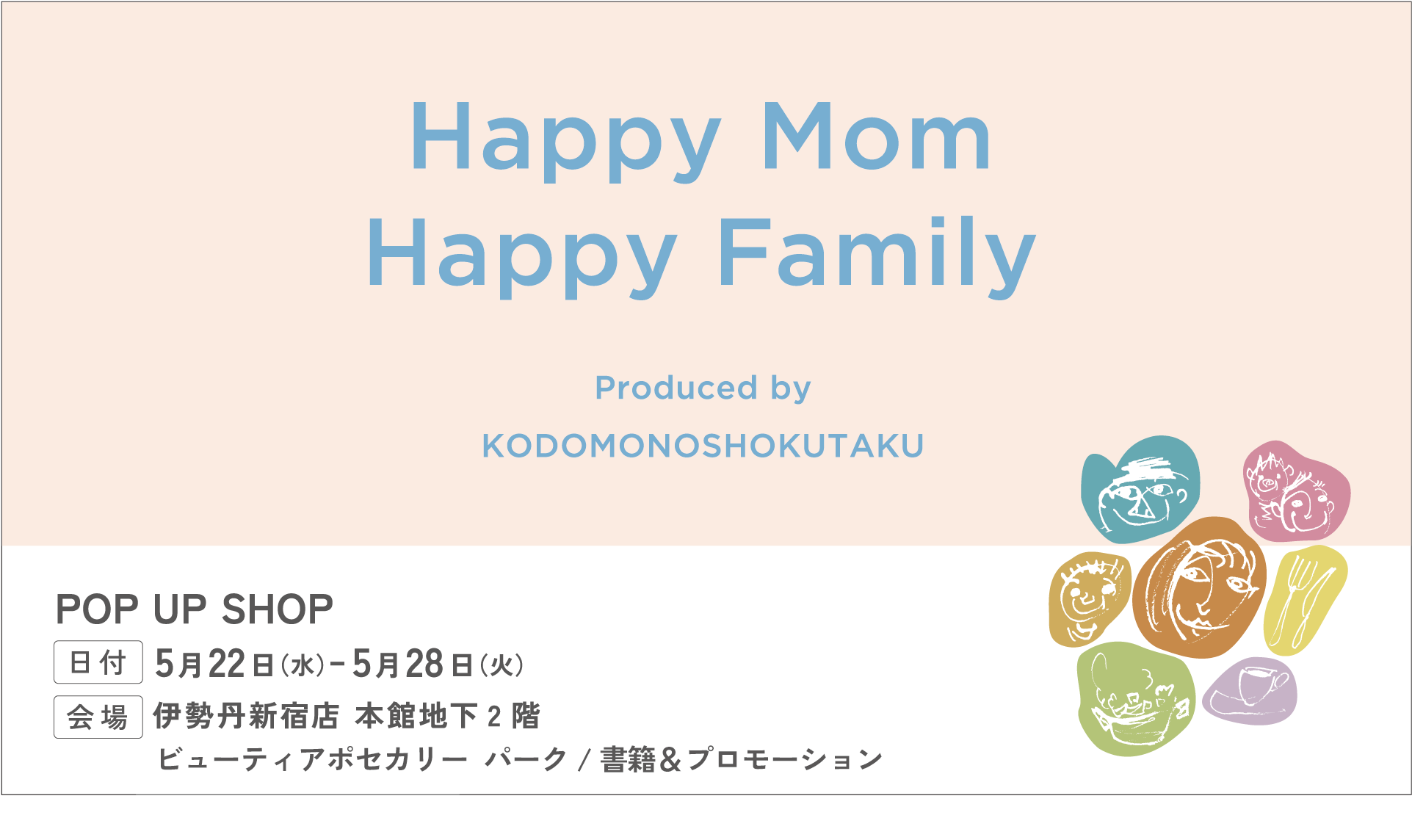 この度、お子様向けの調味料や冷凍食品で定評のある<子どもの食卓>が、ママと家族のための一週間を初プロデュース。伊勢丹新宿本店にて2024年5月22日(水)から5月28日(火)まで開催します。