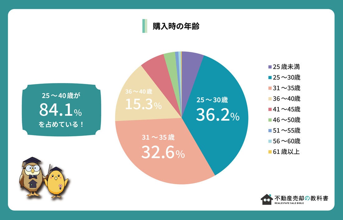 - 家を購入する時期は、30歳前後が多く、既婚者(子持ち)が80%以上