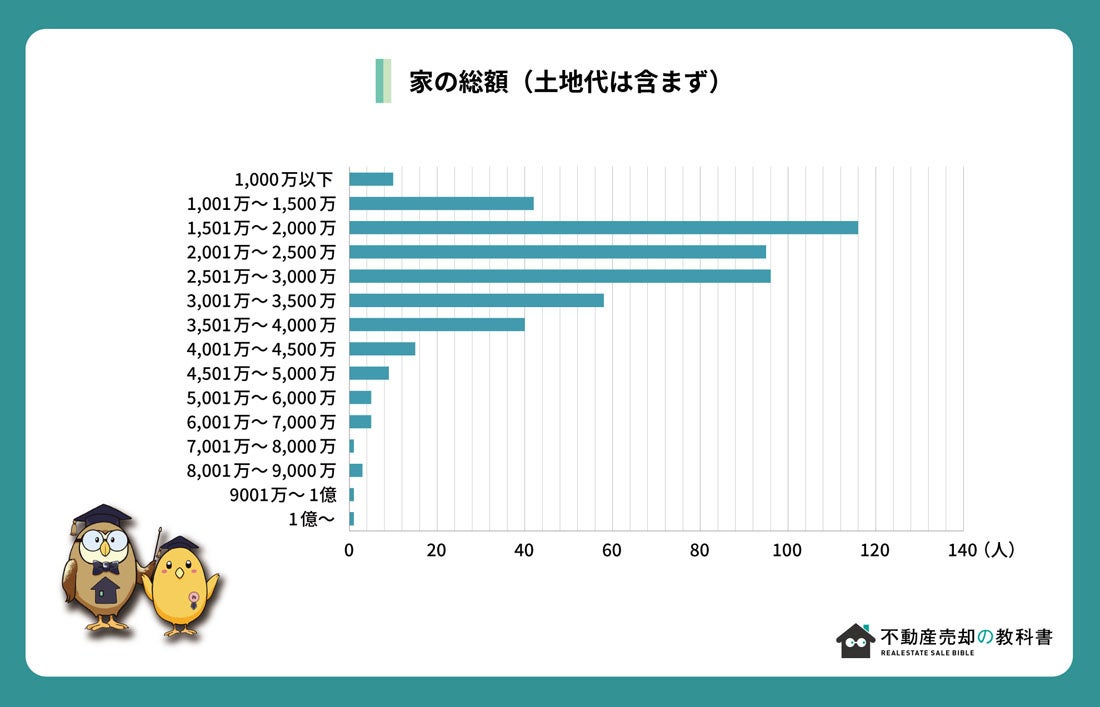 次に家の金額(土地代含まず)を見ると1,501~3,000万程度がボリュームゾーンとなっています。