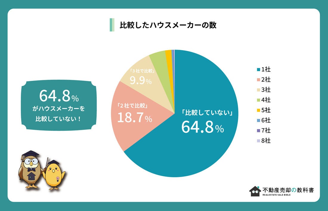 - ハウスメーカーを比較しない人が64.8%と1社だけで決めてしまう人が多い