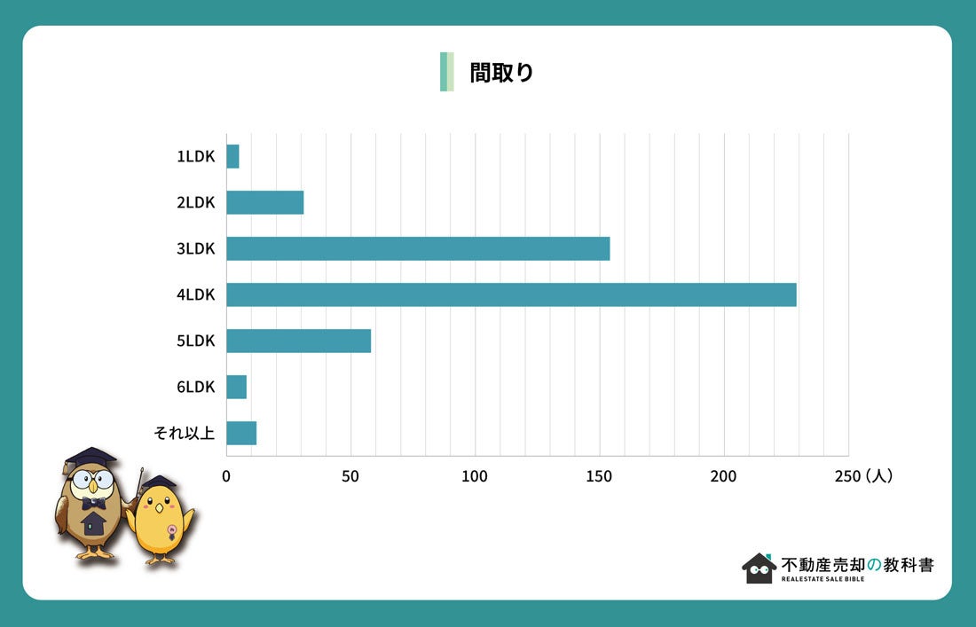 家の種類は注文住宅が7割以上、間取りでみると3LDK~4LDK、延床面積は28.1~43坪が多く、子持ち夫婦が住むのに平均的な数字となっています。