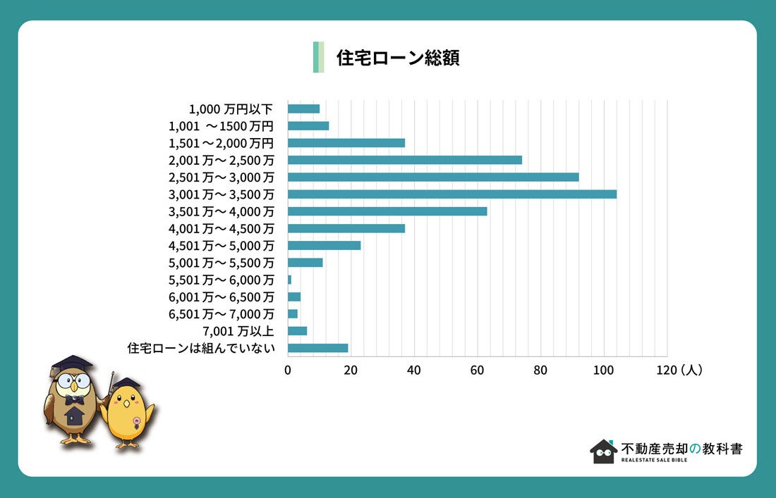 - 家の価格(土地代含まず)は1,501~3,000万、ローン総額は2,001~4,000万が多い