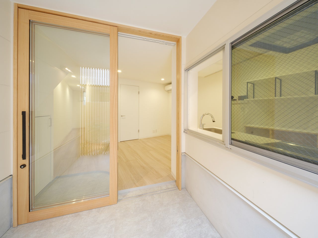 半屋外の小庭に面したキッチンを利用して、料理をしながらパートナーや友人と自由な時間を過ごすことを目的としたライフスタイル。