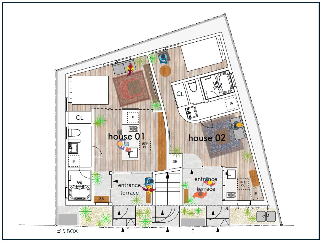 1F:料理好きが暮らす部屋(小庭のある自由な集いの部屋)