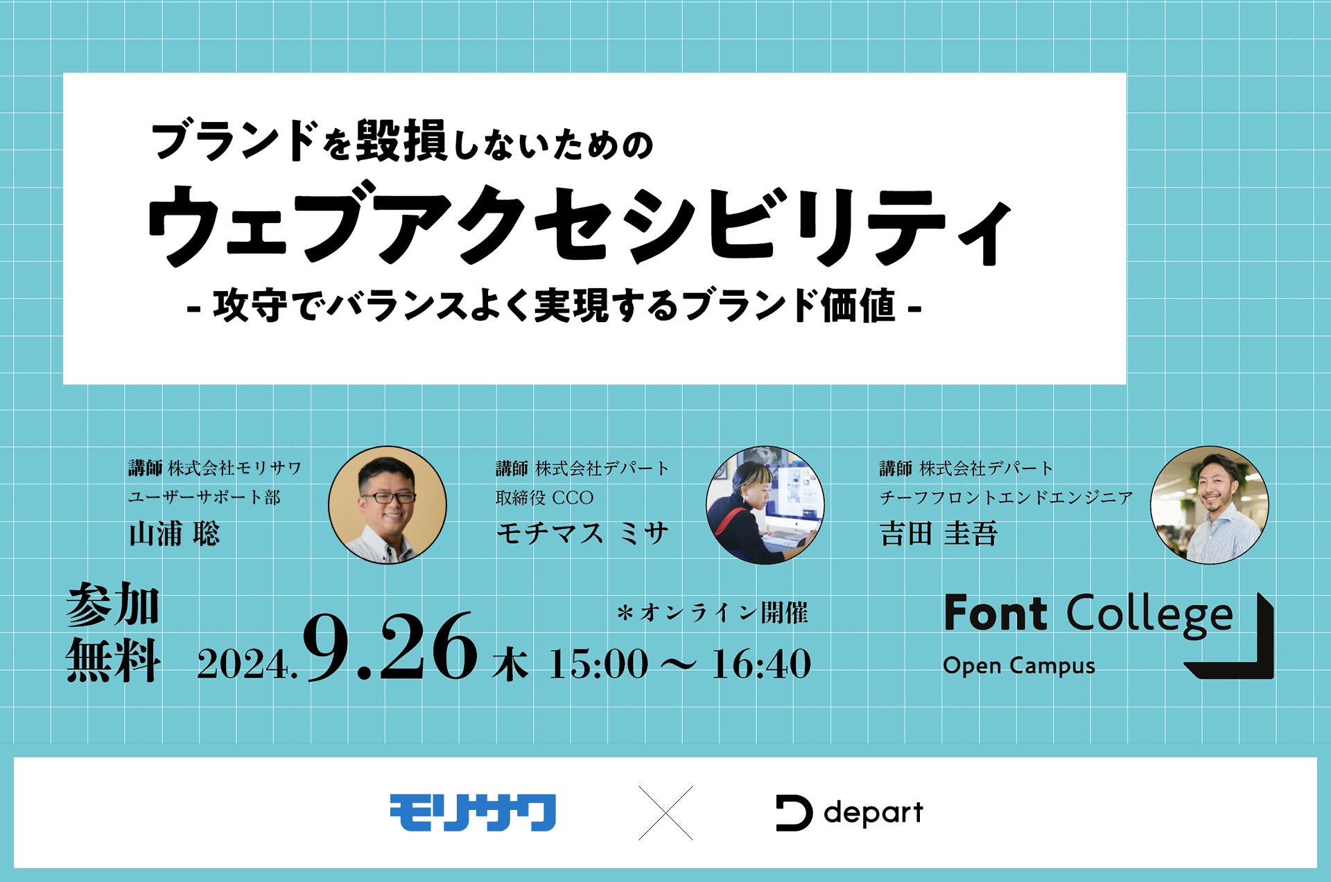 9/26(木)無料開催【モリサワ×デパート 共催セミナー】 ブランドを毀損しないための、ウェブアクセシビリティ ~攻守でバランスよく実現するブランド価値~