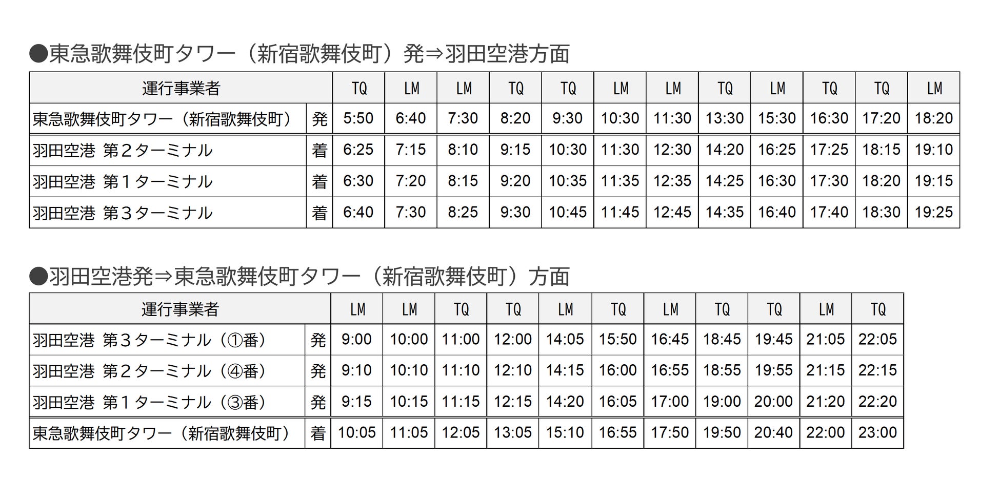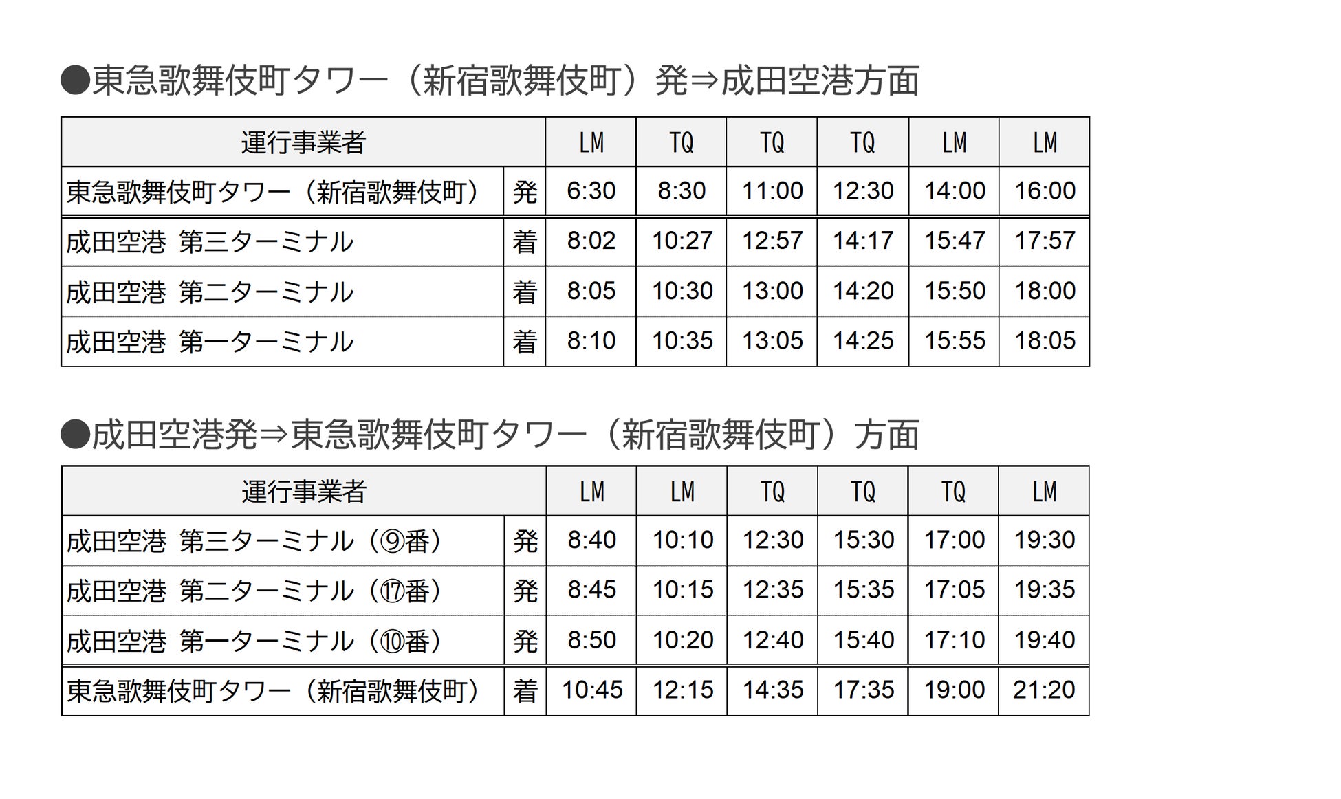 (運行エリア:『東急歌舞伎町タワー~羽田空港、成田空港』間)