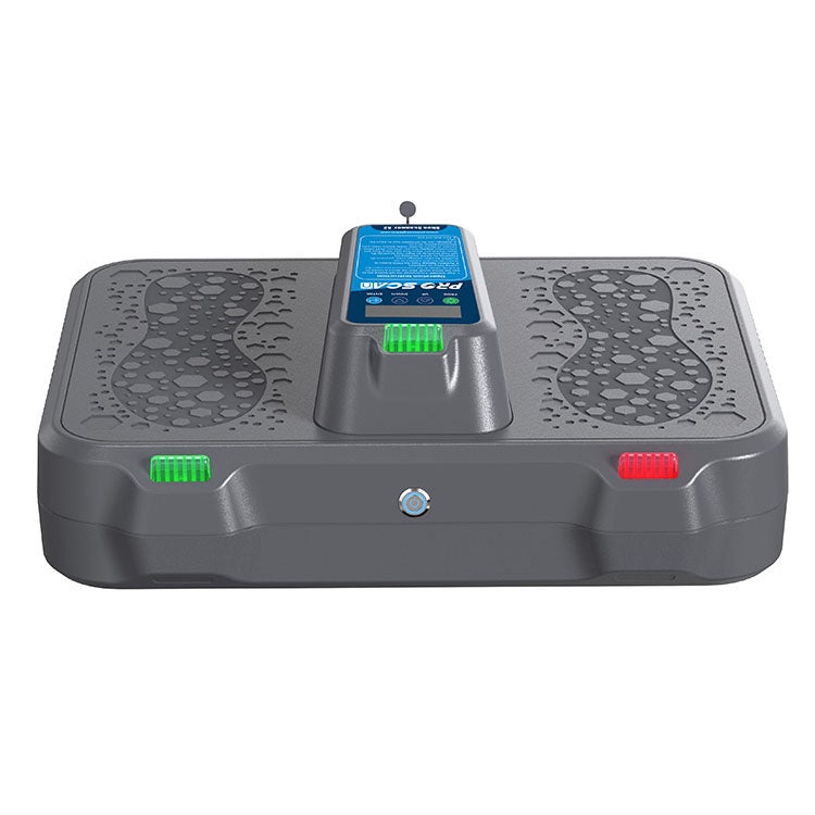 運用方法は非常に簡単です。筐体の上に両足を乗せることで自動的に検知を行い、異常がない時は全てのLEDが緑表示、どちらかの足に異常がある場合は該当側のLEDとブザー音で通知します。